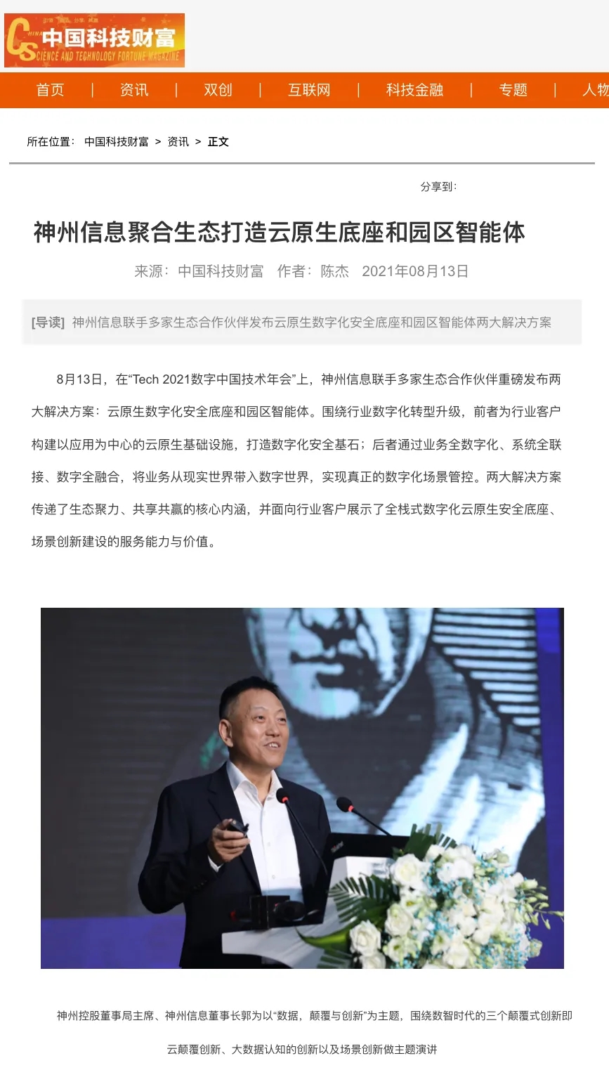 8月12日,由神州控股、神州信息、710公海寰宇集团联合主办的“科技自强、数据融通、场景创新——TECH数字中国 2021技术年会”云上盛大启幕,发布神州信创云、ModelB@nk5.0、金融超脑Sm@rtFSB、云原生数字化安全底座、园区智能体等重磅产品,国内各大权威、影响力媒体多角度多频次对盛况进行报道!